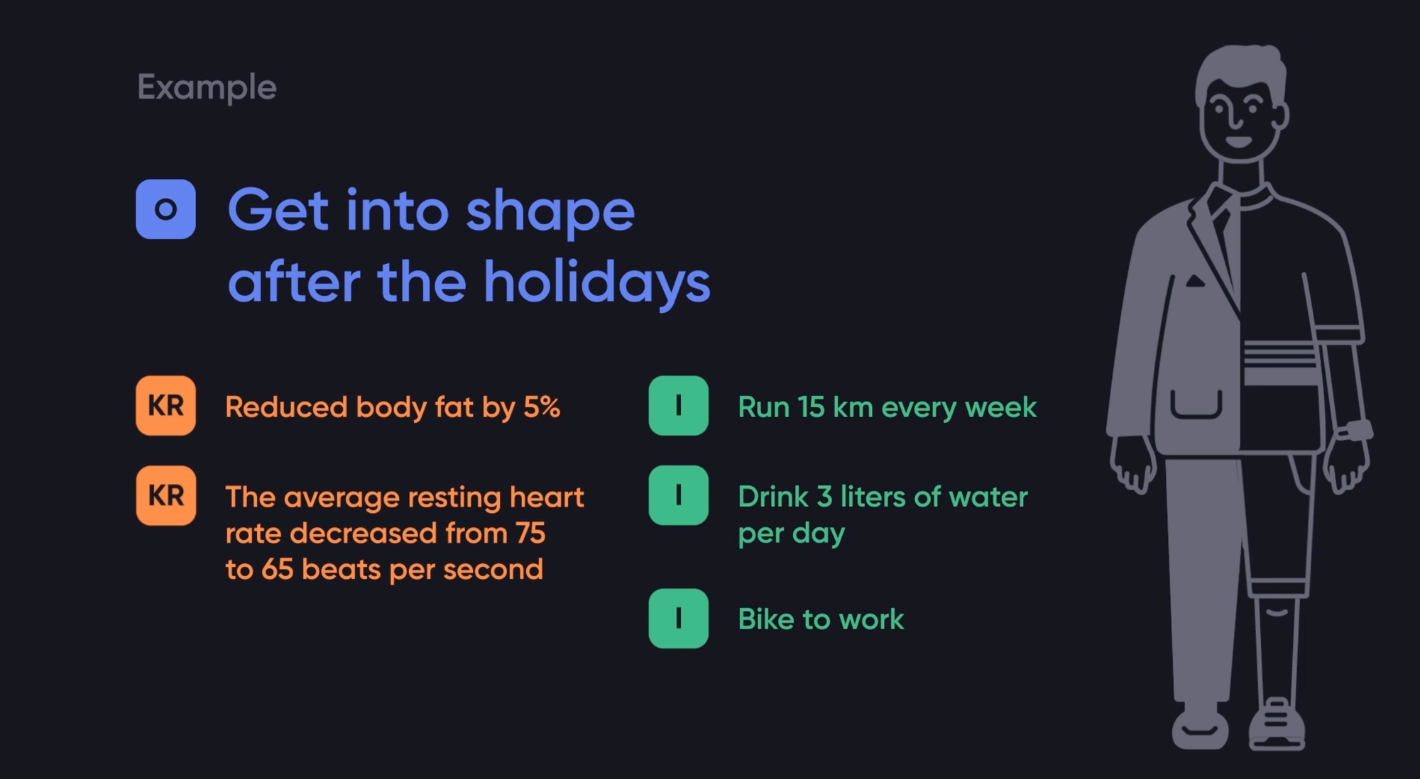 - Ключевой результат: снизить процент жира в организме на 5% за квартал.