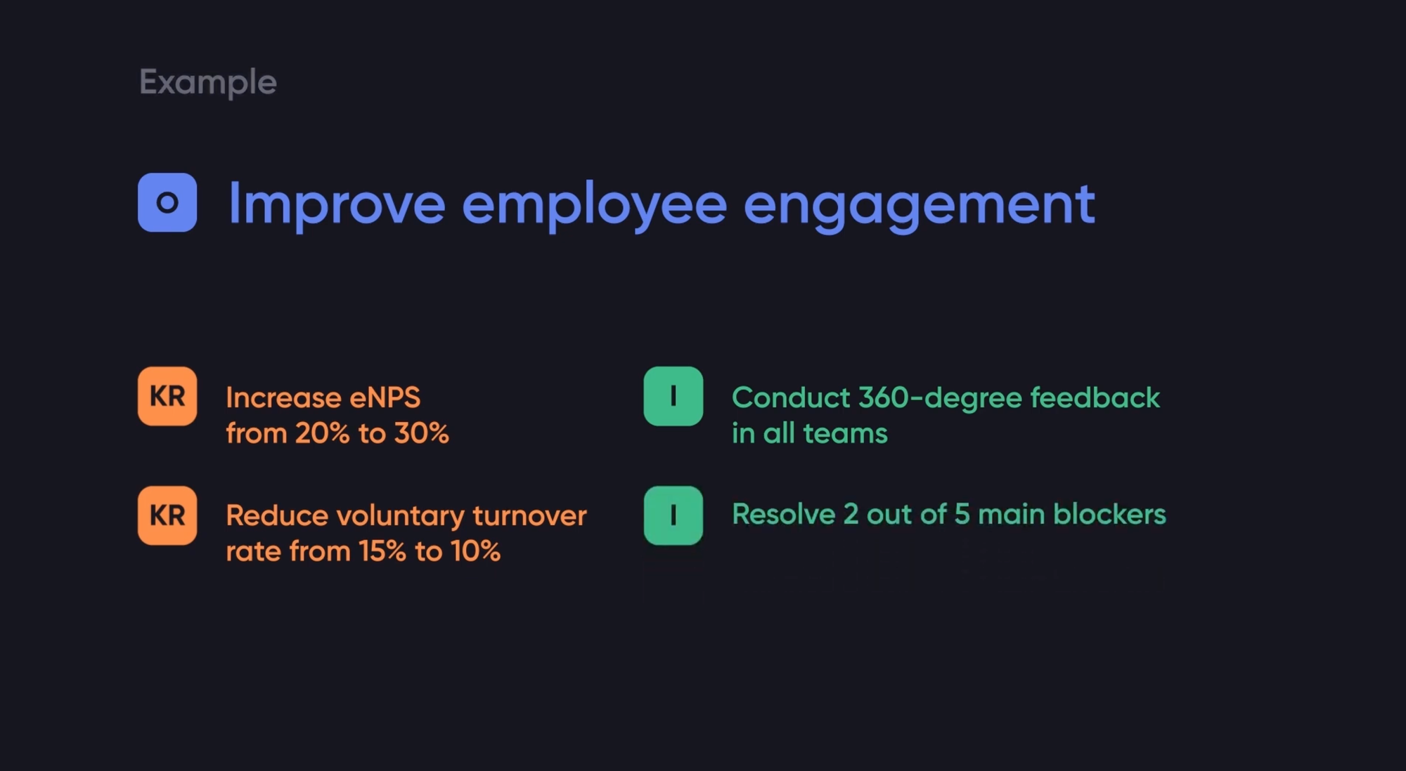 - 1–3 цели на квартал, 2–4 KR на цель.